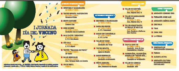 Talleres de manualidades, música, una paella gigante, actuaciones teatrales… son solo algunas de las actividades que van a encontrar en esta jornada los ciudadanos de Alicante, y en la que espero se diviertan enormemente. Es un orgullo poder contar con el movimiento vecinal y asociativo que posee nuestra ciudad, y por eso con la organización de esta iniciativa hemos querido rendir tributo al esfuerzo que realizan todas ellas de forma continua.