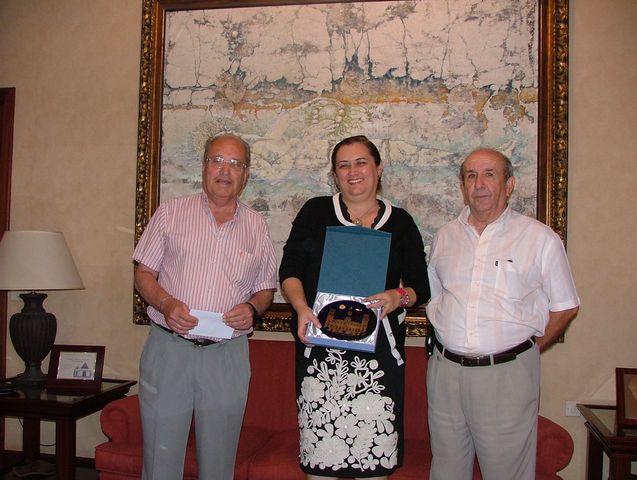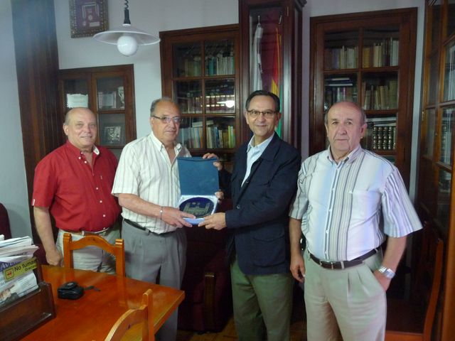 La Excma. Alcaldesa Dña. Sonia Castedo, hace entrega de dos platos representativos de Alicante, con la fachada del Ayuntamiento, a los amigos Hugo, José Miguel y José Paco, para que se los hagan llegar a Dña Guadalupe González , representante del Cabildo Insular, y a D. Antonio Castro, presidente del Parlamento de Canarias.