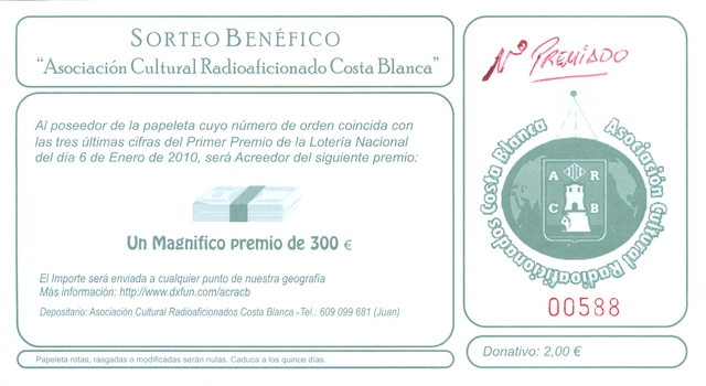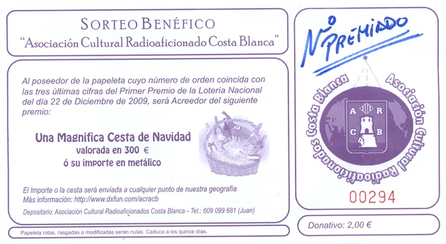 Si no lo veo no lo creo, José EA5FDM socio de esta Asocioación y Secretario fue el ganador de los dos premios Navidad y Niño, no vendio ninguna papeleta, asi que le tocaron los dos premios.