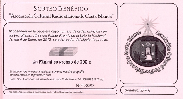 Juan EA7GWA, Premiado con los 300€ de la rifa de Navidad de ACRACB, enhorabuena Juan.