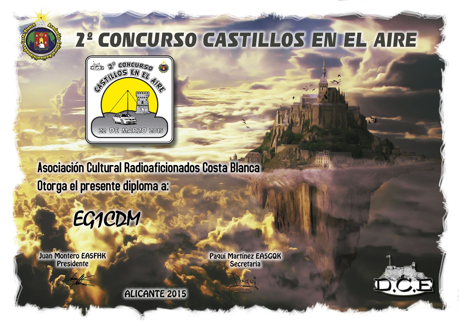 Las estaciones No Expedicionarias,  que quieran conseguir  diploma en PDF de este concurso, deberán contactar con el 90% de las actividades en el aire.Enviar rellenado el formulario que se facilita en la página web con todos tus datos, si lo quieres impreso debes ingresar 5 euros. El DCE 1.0 verificará todos los comunicados a través del log en línea. Aparte del formulario os dejamos un ecell por si os es más sencillo anotar vuestros contactos.