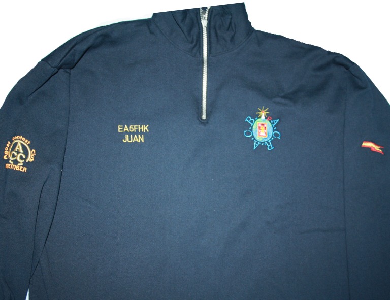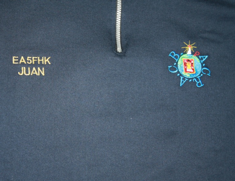 – También realizamos todos estos artículos para cualquier grupo, asociación, radioclub, etc…, con su logo e indicativo personalizado, pero esto tiene un incremento de 40 € por logotipo para hacer el programa, sólo la primera vez. Después, cada prenda valdrá el importe indicado en la web.