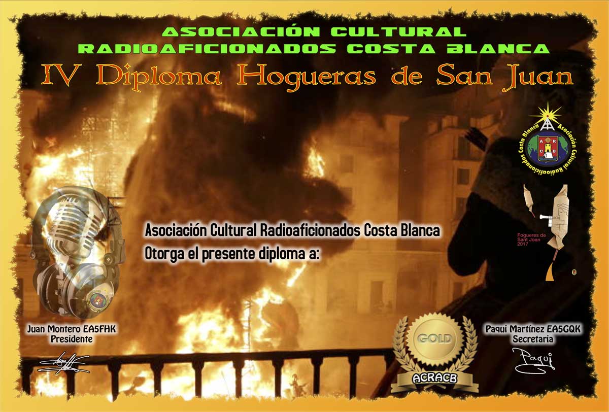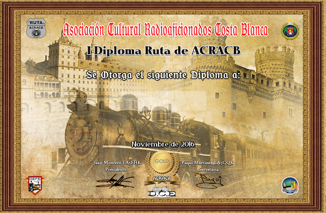 Una vez más queremos agradecer tu participación en los diferentes diplomas organizados por la Asociación Cultural Radioaficionados Costa Blanca
