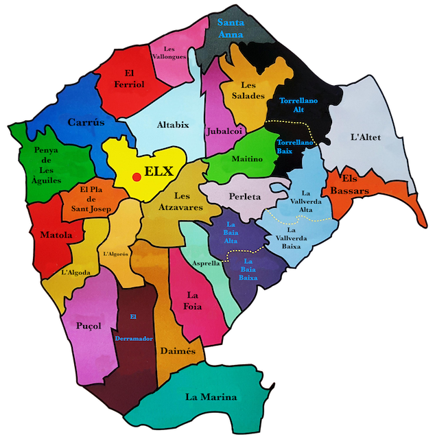 La Hoya o La Foia: La partida de La Hoya se sitúa a SSE del término municipal de Elche, limitado con Santa Pola.