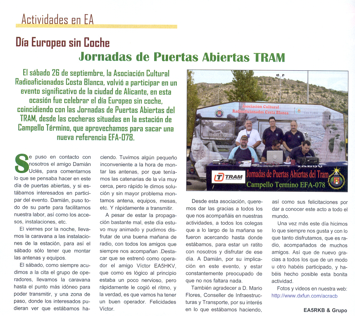 El pasado sábado día 26 de septiembre, la Asociación Cultural Radioaficionados Costa Blanca,