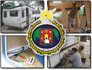 A finales de Abril, ya casi terminada la llevamos para ponerle el vinilo, toda recubierta de imágenes de nuestra cuidad, esculturas, fotos de las actividades, etc, pero nos encontramos con un problema con el que no contábamos, la empresa de vinilo, nos tomó el pelo y no la terminó para la fecha señalada. Después de muchas peleas, mucho insistir, y pasarlo muy mal a dos semana de la entrega de Trofeos nos dicen que ya está terminada, no nos lo podíamos creer, Por Fin ¡ y en ese momento, cuando la vimos, se nos olvidaron todos los malos ratos que habíamos pasado. Andrés va a recogerla con la grúa y la subimos otra vez al lugar de trabajo, para darle los últimos retoques, colocarle los pilotos, embellecedores de aluminio, etc.