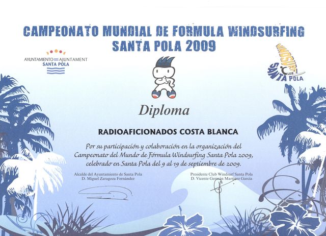 Organizado por la Asociación Cultural Radioaficionados Costa Blanca,y con el patrocinio del Excmo. Ayuntamiento de Santa Pola y el Club Windsurf Santa Pola.